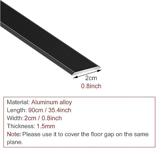 Flacher Bodenübergangsstreifen 0,8' / 1,4' / 2' / 2,4' Breit, Türstangen Aus Metall for Lücken Im Laminatboden, Türschwellenabdeckung Aus Aluminium, Schneidbar (Farbe : Schwarz, Größe : Width 2cm/0.