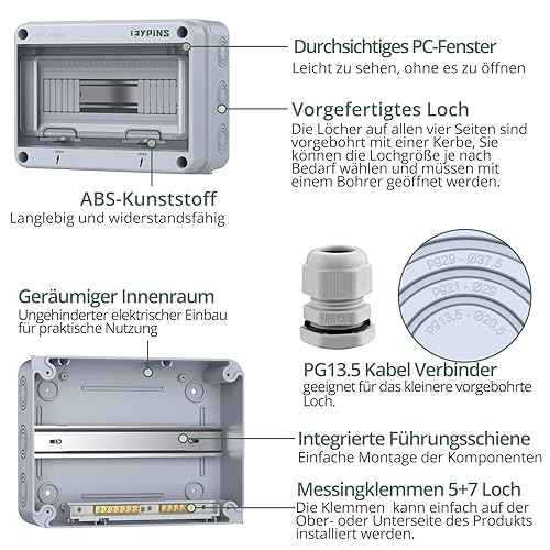 EYPINS Verteilerkasten Aufputz 2-Reihig 24 Module, Sicherungskasten Aufputz IP65 Feuchtraum Aufputzverteiler, Unterverteilung Aufputz mit umlaufender Dichtung für Garten oder Außenbereichen