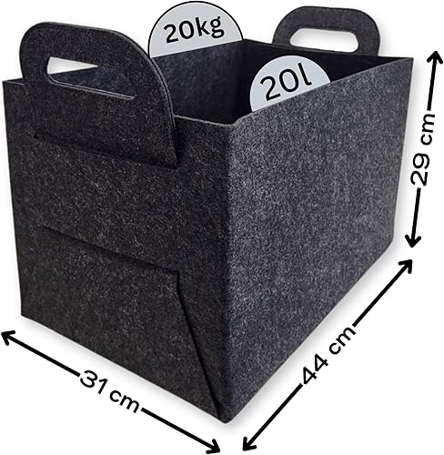 ToCi Filzkorb | Flexibler Allzweckkorb aus Filzstoff | Platzsparend faltbar | Für Kaminholz, Zeitungen, Spielzeug, Flaschen oder Bücher | 44x31x29cm, 20kg Tragkraft