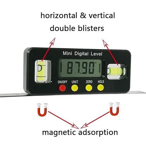 360 Grad Mini-Digitaler Präzisionswinkelmesser, digitaler Wasserwaage, magnetisch, Bodenwinkel, Messwerkzeug mit horizontalen und vertikalen Doppelblasen, digitale Wasserwaagenbox, Rot
