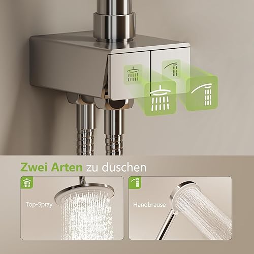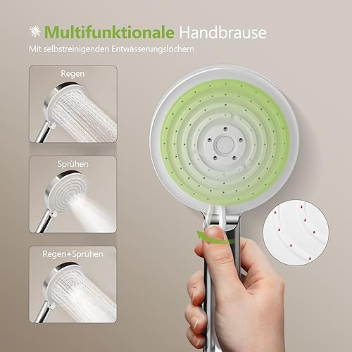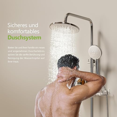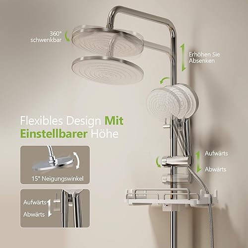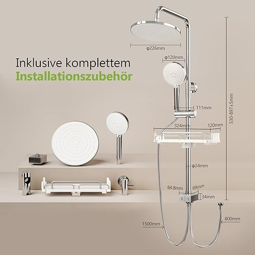 S'AFIELINA Duschsystem Regendusche Duscharmatur Komplettset mit Ablage, 3 Strahlarten Handbrause, Chrom Regendusche ohne Armatur, Duschset Schlauch aus Edelstahl, Überkopfbrause Runde