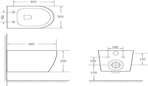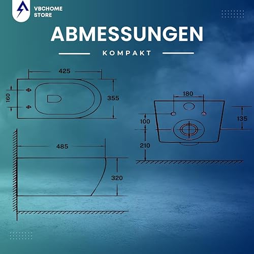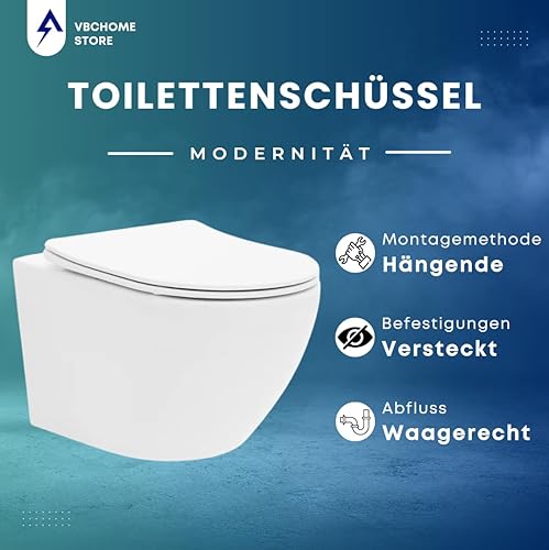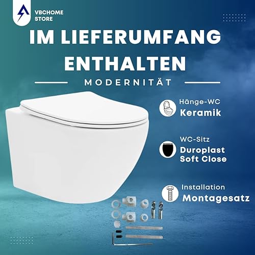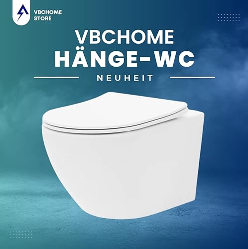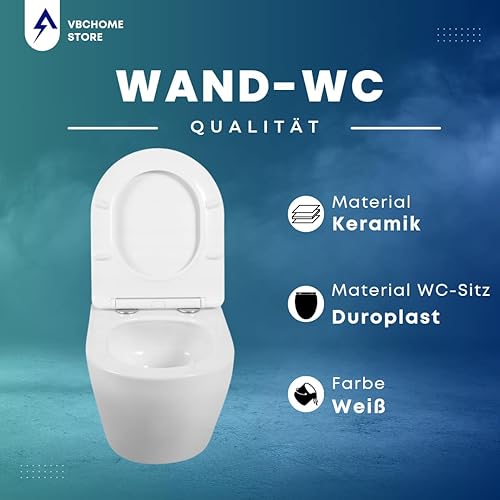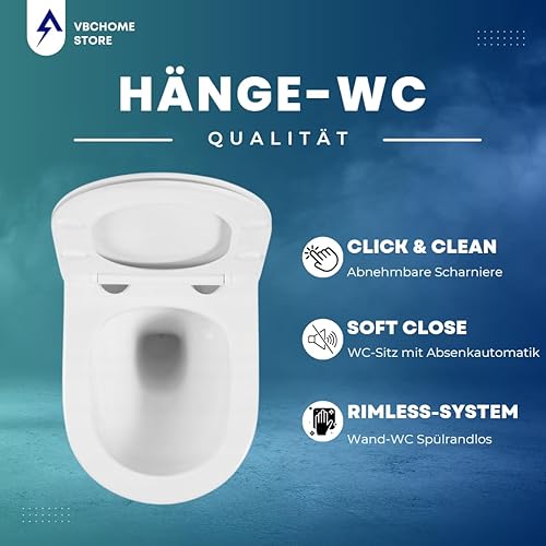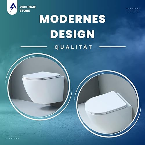 VBChome Hänge-WC Spülrandloses aus Keramik mit Toilettendeckel WC-Sitz aus Duroplast Absenkautomatik Rimless SoftClose-Funktion Tiefspüler Toilette Oval Form Wand WC Wand-WC-Set