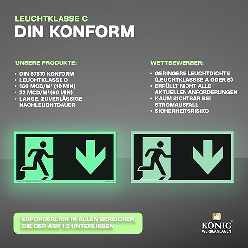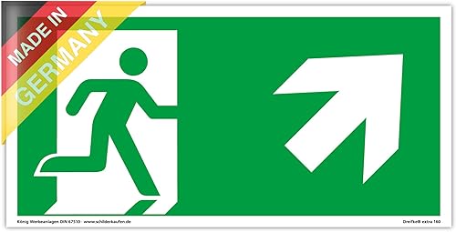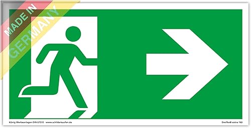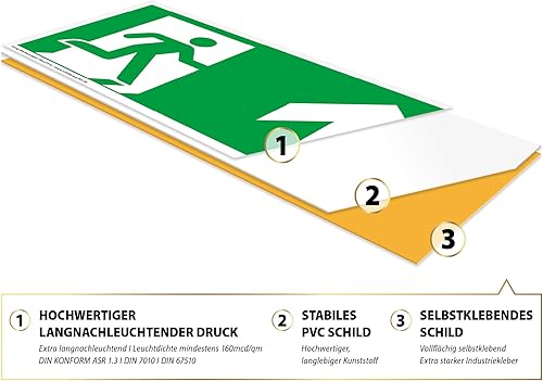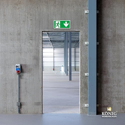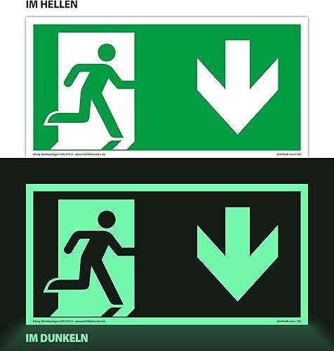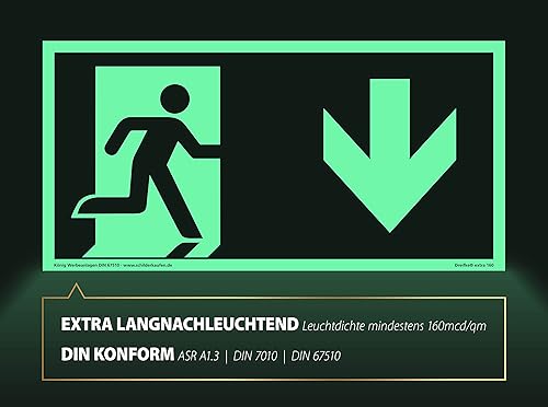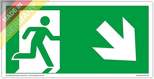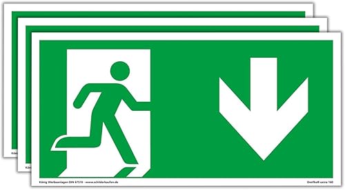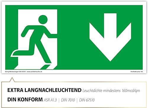 Schild Notausgang | extra langnachleuchtend | PVC selbstklebend 297x148mm | gemäß ASR A1.3 DIN 7010 DIN 67510 | Notausgangsschild Pfeil nach unten | Fluchtwegschild Rettungsweg | Dreifke® extra 160