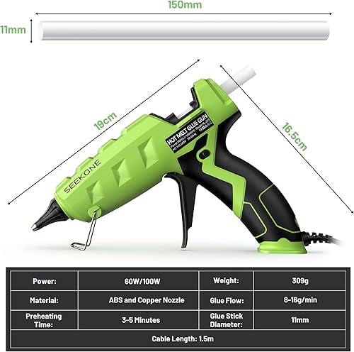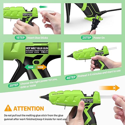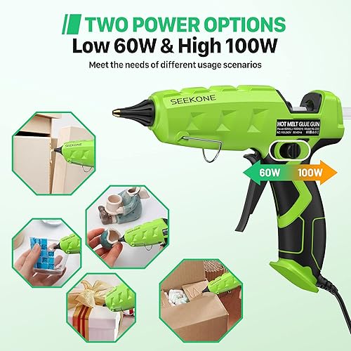 SEEKONE Klebepistole 60/100W Profi Heißklebepistole Dual Power mit 20 Stück Klebesticks Heißklebepistolen für schnelle Industrielle Reparaturen in Haus & Büro und Kunst Handwerk Reparatur DIY
