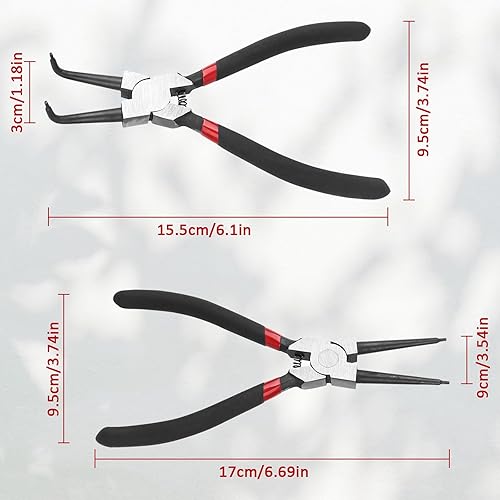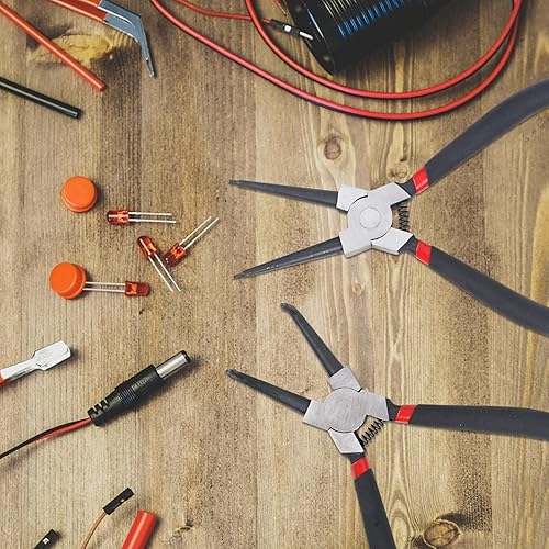 XCDMJ 2 Stück Sprengringzangen Seegeringzange Set 175mm Zange Gerade & Gebogen 7-Zoll-Sicherungsringzange Innen - Sprengringzange Mit Langlebigen Federn, Rutschfesten Griffen