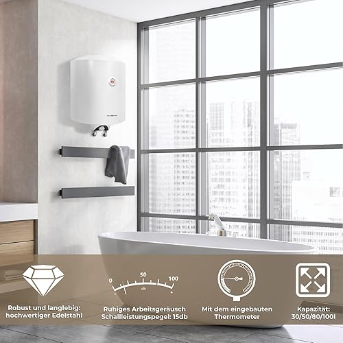 Elektro Warmwasserspeicher - Thermometer, emailliert, 30, 50, 80, 100 Liter Speicher, für Wandmontage - Wasserboiler, Boiler, Warmwasserbereiter, Warmwasserboiler für Bad