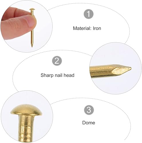 YPLonon Kleine Nägel 150g (ca. 600 Stück) Rundkopfstifte Nägel 20mm Gold Vermessingte Nägel Mininägel Holznägel Nicht Leicht Verbiegen Brechen für DIY Hardware Scharnier Zubehör Befestigungen
