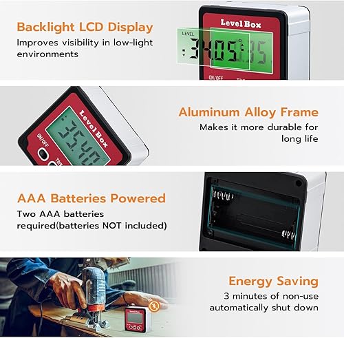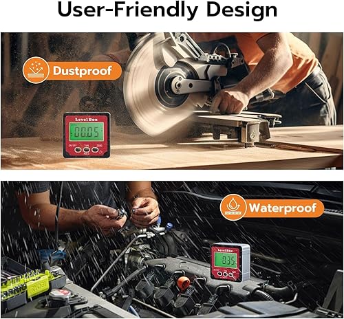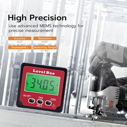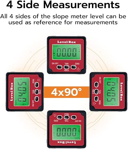 Mcbazel Digitaler LCD Winkelmesser Neigungsmesser, Winkelsucher Inklinometer, Rot, GF-020653, Magnetisch, Digitales Neigungsmessgerät, Level, Winkelmesser