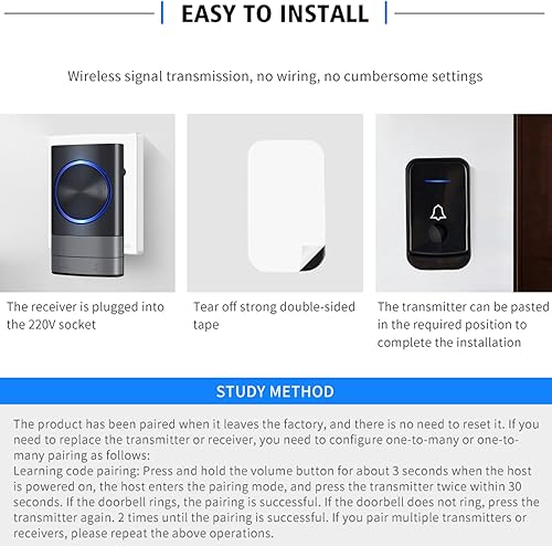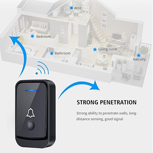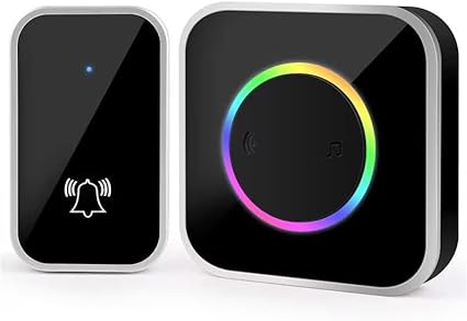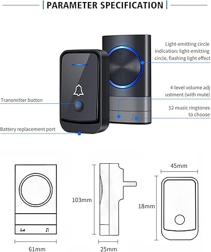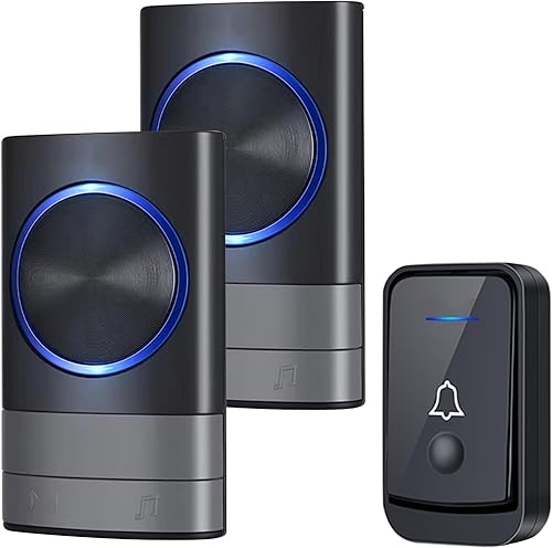 KEWUZY Funktürklingel,Wasserdicht Staub Aussen Klingel Haustür mit 52 Klingeltönen 4 Lautstärken Blinkende LED,Türklingel Set Drahtlose Reichweite 400m (Schwarz)