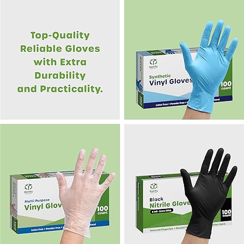 Comfy Package [100 Count] Nitrile Disposable Gloves - 4 mil. | Latex Free and Rubber Free | Non-Sterile Powder Free Gloves - L