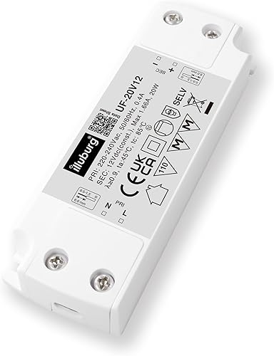 illuburg LED Trafo 12V 20W Flach Flackerfrei Geräuschlos für G4 GU5,3 LED Streifen Möbel Verdeckte Montage Netzteil Treiber Vorschaltgerät Driver Power Supply