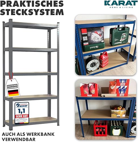 KARAT Schwerlastregal XXL, blau 200 x 150 x 60 cm, Lagerregal für Garage, Keller und Werkstatt - Steckregal, Weitspannregal, Kellerregal, Werkstattregal (TitanRack Big)