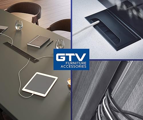 GTV - Kabeltülle Merida - Kabeldurchführung Kabeldurchlass Rechteckig Kabelorganisation für Möbel Kabeldurchlass/Entworfen für die Installation in der Arbeitsplatte / Schwarz 18cm