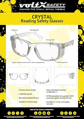 voltX 'Crystal' Sicherheitsleser, Vollverglaste Sicherheitsbrille (2,0 Dioptrie, klare Linse)-LESERSCHUTZBRILLE, UV400-Linse