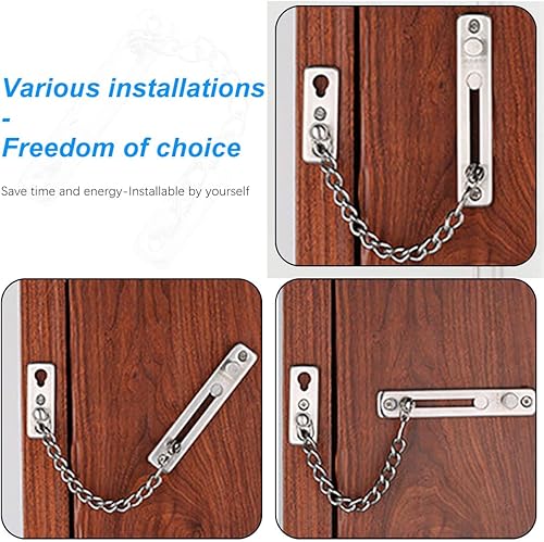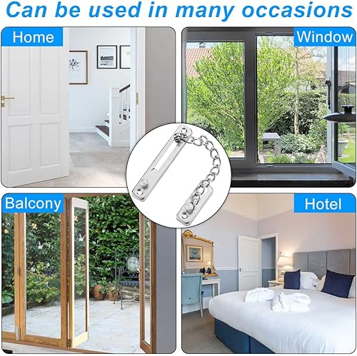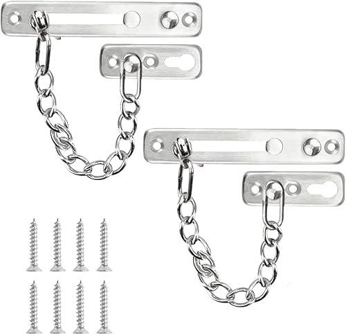 Tür Sicherheitskette,Diebstahl Kette Türkette,2 Stück Türkette aus Edelstahl GießenTürsicherung Tür Kettenschloss mit Sicher Schnalle,Türgriff Diebstahlschutz Kette mit Schrauben