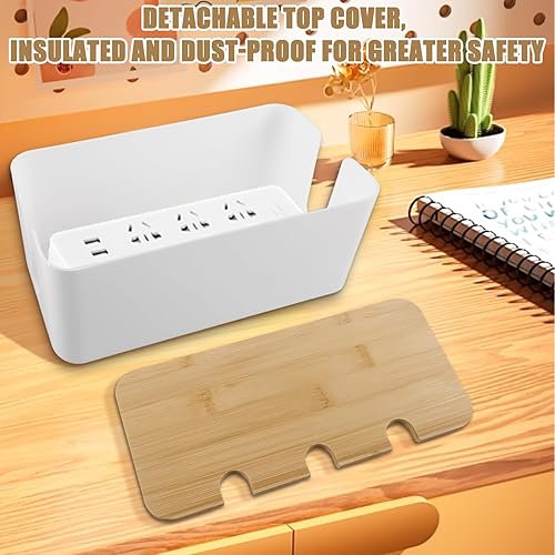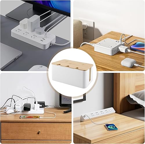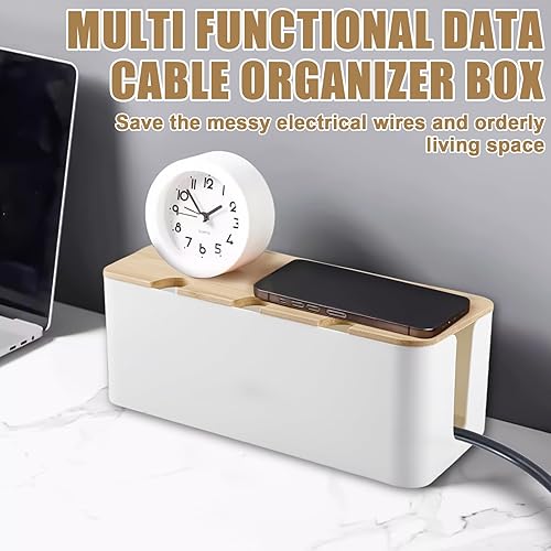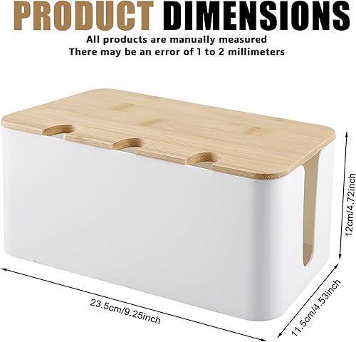 Kabelbox, Weiß Kabel Verstecken mit Holz Deckel, Weiß Kabelmanagement Box, 23.5 * 12 * 11.5cm Kabel Aufbewahrungsbox, DREI runde Löcher Kabelbox Weiß, Kabelbox Holz für Kabe, Steckdosenleisten