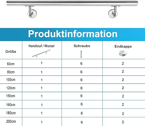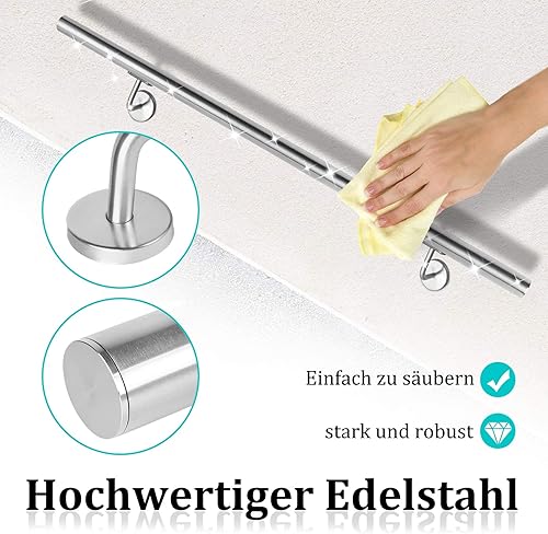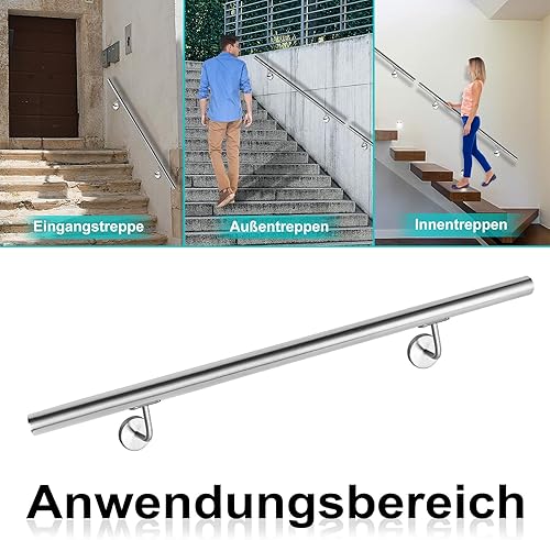 XMTECH Edelstahl Handlauf Treppengeländer Geländer Wandhandlauf Wand Treppe für Aussen & Innen, mit Wandhalterungen und Montagematerial, Länge: 120 cm