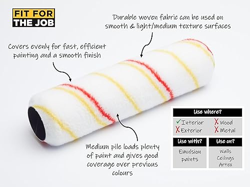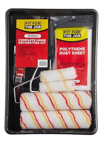 Fit For The Job 10-teiliges Heimdekorationsset, Farbroller- und -wannen-Set mit Pinsel, Staubschutzfolie, Rührer – Rollenset sowie Mini-Roller zum Auftragen von Dispersionsfarbe an Wänden und Decken