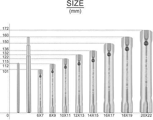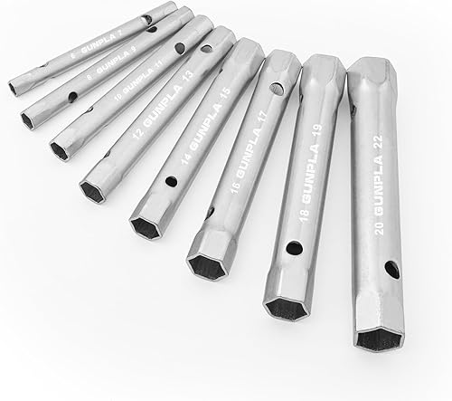 Gunpla Rohrsteckschlüsselsatz 10-tlg Metrische 6x7mm-20x22mm inkl. Drehdorn, Schraubenschlüssel Satz in Rolltasche für Spuele, Becken, Wasserhahn Installation und Reparatur