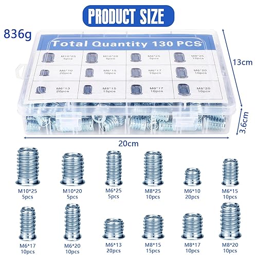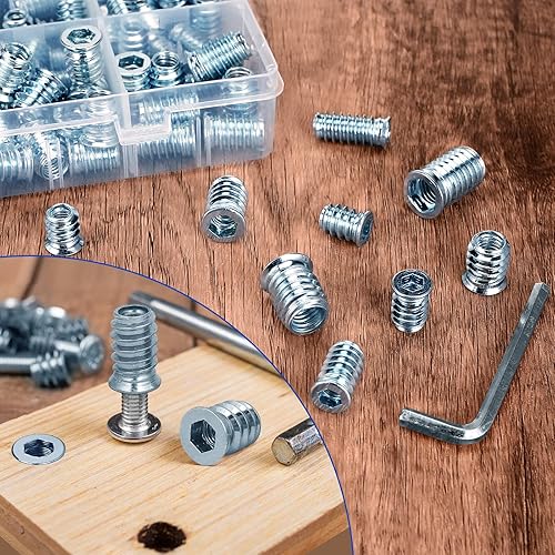Gewindeeinsatz, 130 Stück Einschraubmutter, M6/M8/M10 Einschraubmuffen, Gewindeeinsätze Holz aus Verzinktem Stahl, Hex Innensechskant Mutter für Holzmöbel