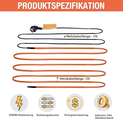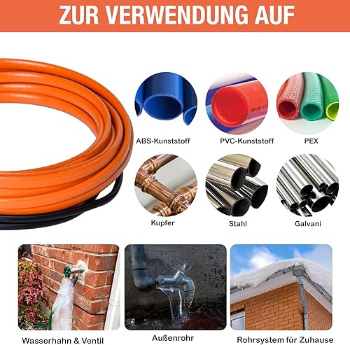Plutohiker frostschutz heizkabel 6M, Selbstregulierendes temperatur heizkabel für Metall-/Kunststoff wasserleitung,pflanzen,palmen,hausrohren, Dachrinnen, Weidetrögen