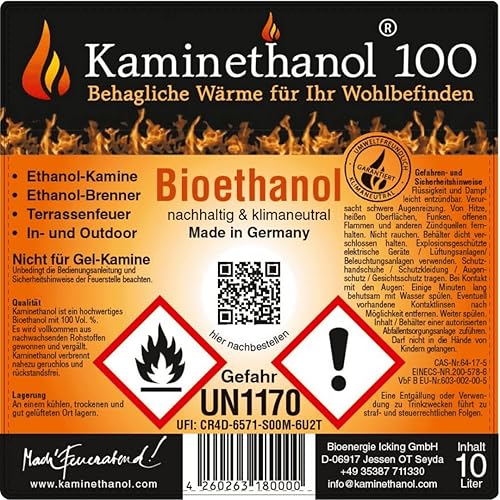 Kaminethanol Icking 20 Liter Bioethanol 100% (2 x 10 L) Premium Qualität - direkt vom Hersteller für Ethanol Kamine, Alkohol-Brenner, Terrasenfeuer, Raumfeuer und Gartenfackeln