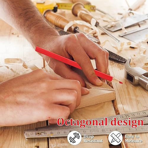 10 Stück rote Zimmermannsbleistifte, 170 mm, flaches Holz, oval, geschliffen, rote Mine, Zimmermanns-Holzbearbeitungsstifte für Holzbearbeitungs-Markierungswerkzeug
