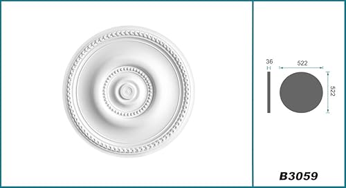 HEXIM Perfect Stuckrosette - Deckenrosette aus PU hartschaum, robust, Zierelement (B3059 - Ø 522 mm) Kronleuchter Umrandung Medaillon Innendekor