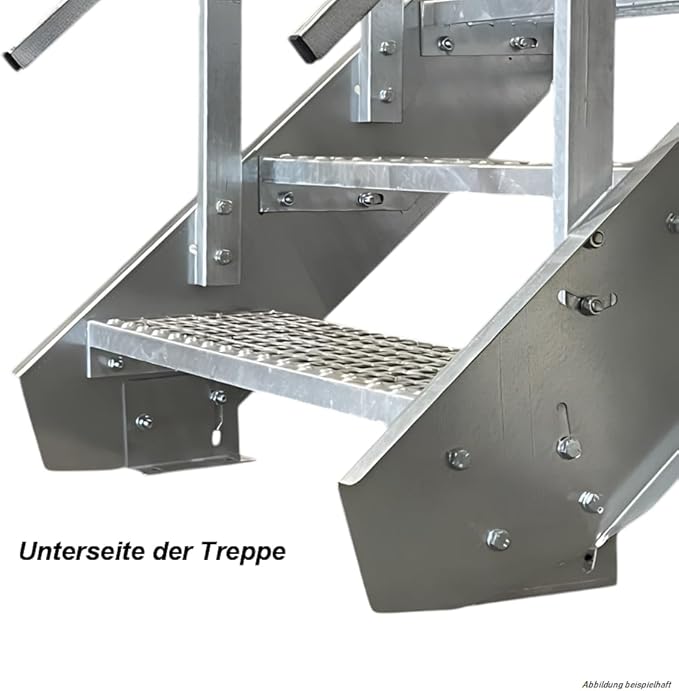 4 Stufen Stahltreppe mit beidseitigem Geländer/Breite 100 cm Geschosshöhe 55-85cm / Robuste Außentreppe/Wangentreppe/Stabile Industrietreppe für den Außenbereich/Inklusive Zubehör
