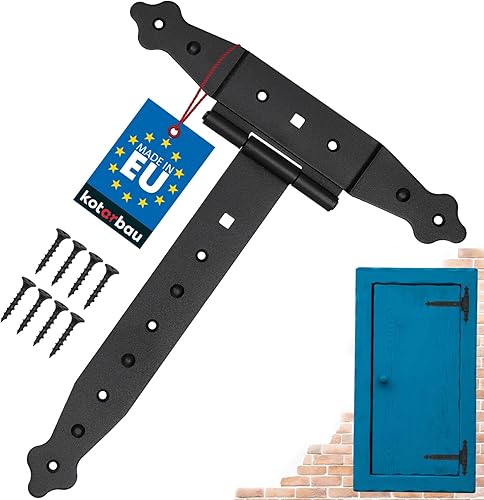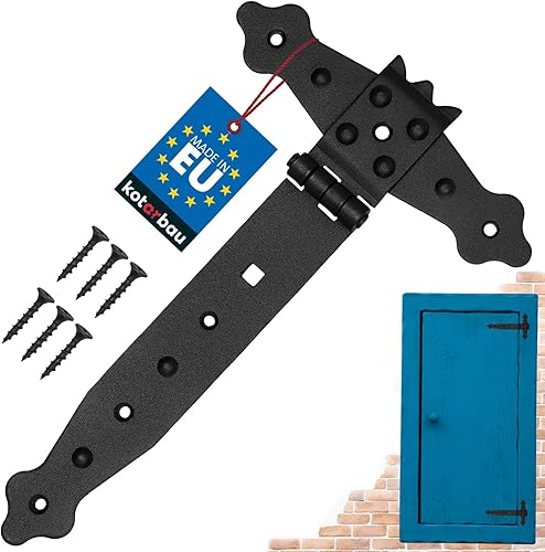 KOTARBAU® Kreuzgehänge Schwarz 250 mm Ladenband Scharnier Schwarz Band Platte Torbeschlag Holzverbindung Werfgehänge Pulverbeschichtet Türscharnier Aussen Tor Scharniere Torbänder