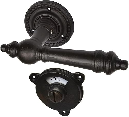 Ventano antiker Türbeschlag Türdrückergarnitur Türklinken und Rosetten für Zimmertüren (Buntbart) Modell 1900 Eisen schwarz