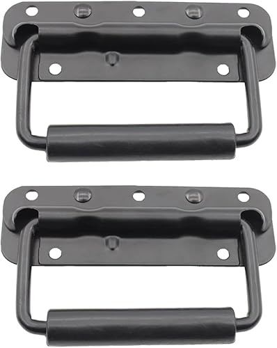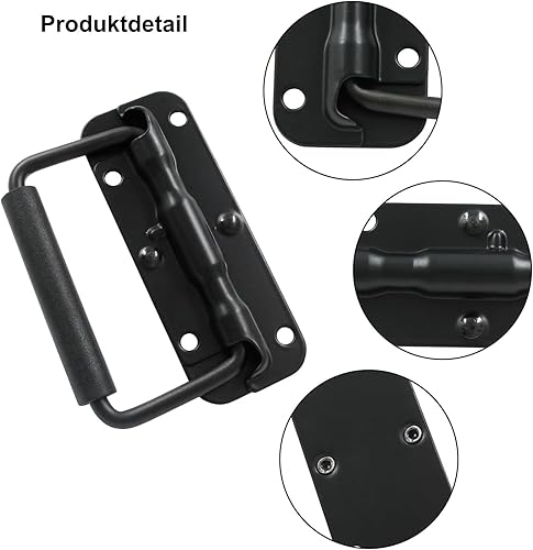ORTAVA 2 Stück Klappgriff, Gefedert Kistengriff Kaltgewalzter Edelstahl, Hardware Boxen Bügelgriff, Koffergriff, Tragegriff Schwarz für Toolbox Tür (125mm)