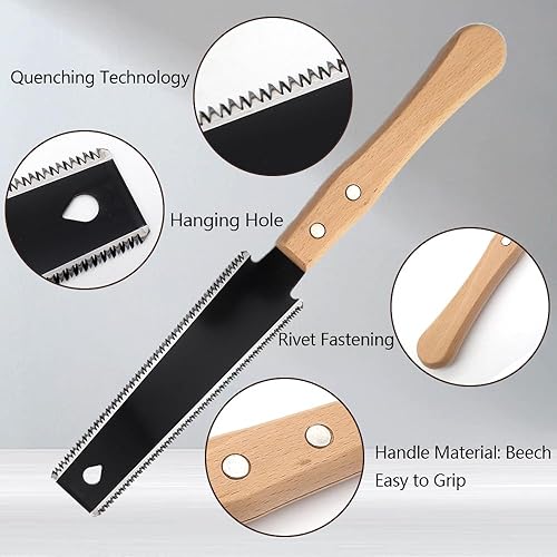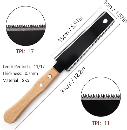 GYSRXS Dübelsäge Bündigsäge 11/17 TPI Zweischneidige Handsäge mit Buchenhenkel Japanische Säge Fein für Woodworking Tools PVC-Rohr Schneiden,15CM Sägeblatt(Schwarz)