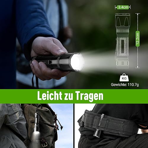 GEARLITE Taschenlampe Led Aufladbar, Superhelle Zoombare 2200 Lumen Mini Torch mit 3 Lichtmodi & Langer Betriebsdauer, IP65 Wasserdicht Taktische Handlampe für Camping Angeln Wandern Outdoor, Notfäll
