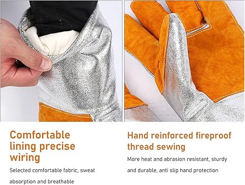 Hitzebeständige, 1 Paar Feuerfeste Schweißhandschuhe aus Rindsleder für das Backen in Gießereien
