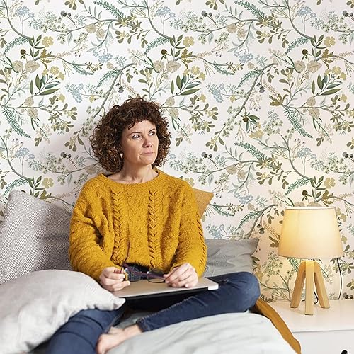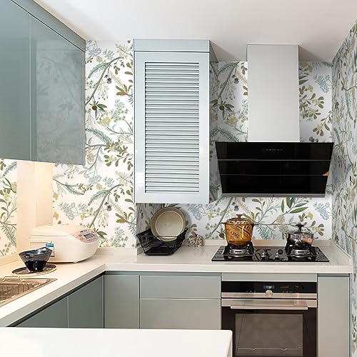 CiCiwind Selbstklebende Tapete Blumen Grün Tapete 40×300cm Möbelfolie Selbstklebend Blatt Blume Tapete abnehmbar Vinyl Klebefolie für Wohnzimmer Schlafzimmer Küche Wand Schränke Dekor