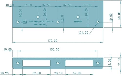 FEPS Schließblech Zimmertür Winkelschließblech mit Schmutzkasten Reparaturschließblech Edelstahl rechts/links verwendbar 170x50x21 mm