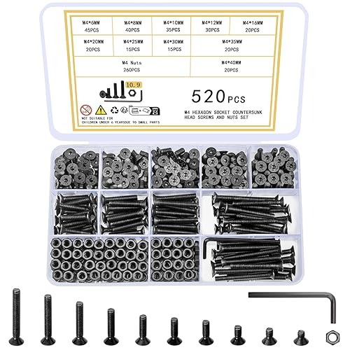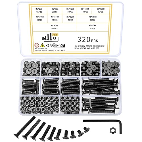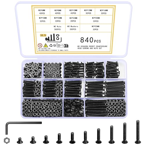Ewwtrey 840 Stück M3 Schrauben Set, Innensechskant Senkkopfschrauben Muttern Set, Innensechskantschrauben mit Muttern Set, Flachkopf Maschinenschrauben Set, Schwarz Gewindeschrauben und Muttern Set