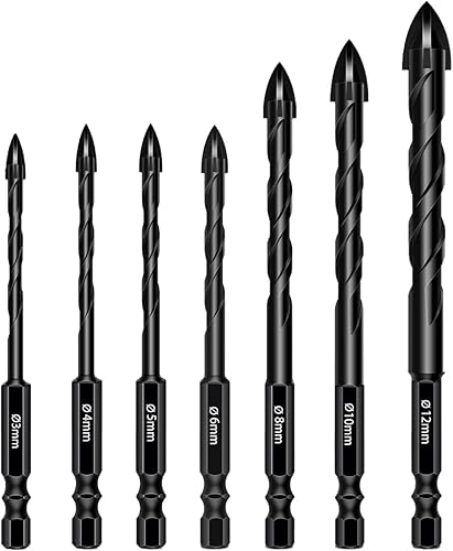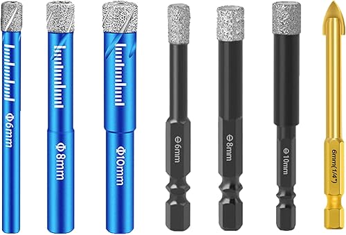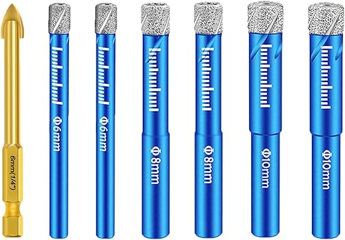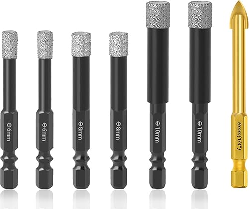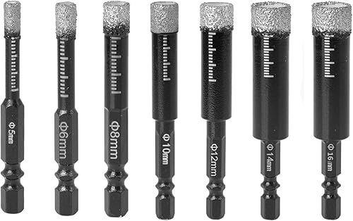 Diamantbohrer Set, Fliesenbohrer Set 7-tlg(5, 6, 8, 10,12,14,16mm), Sechskant-Schaft, Diamant Bohrer Set, bohrer diamantbohrer fliesenbohrer für Keramik Granit Porzellan Fliesen