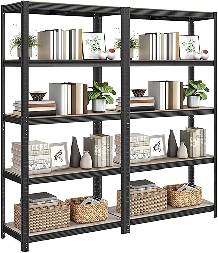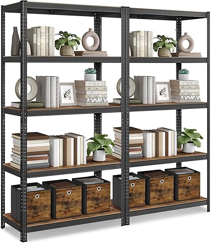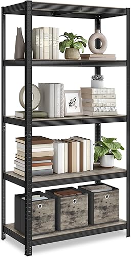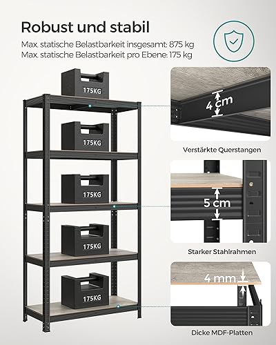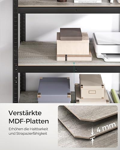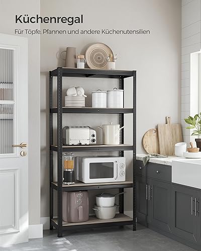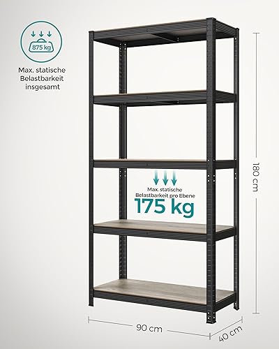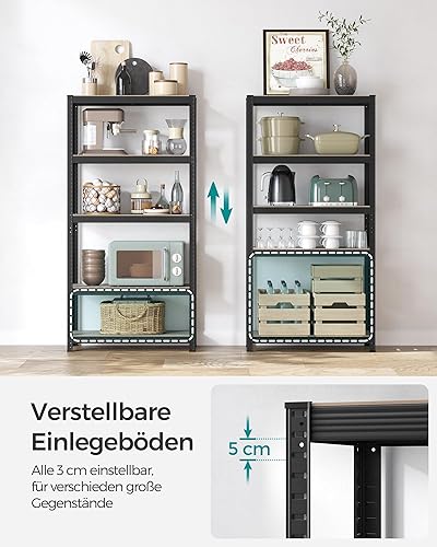 SONGMICS Standregal, Bücherregal, Lagerregal, 5 Ablagen, Küchenregal, Regal, 60 x 120 x 200 cm, bis 750 kg belastbar, verstellbare Ablagen, Industrie-Design, vintagebraun-schwarz GLR060B11