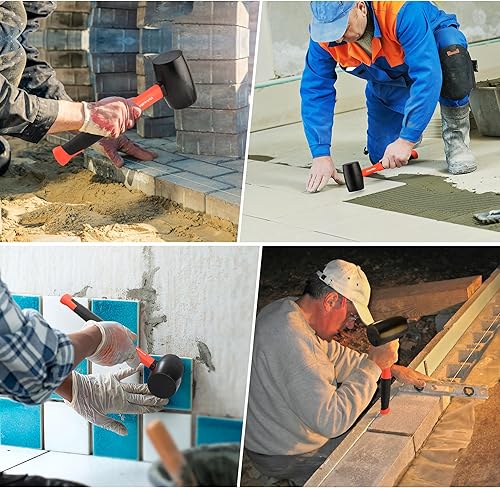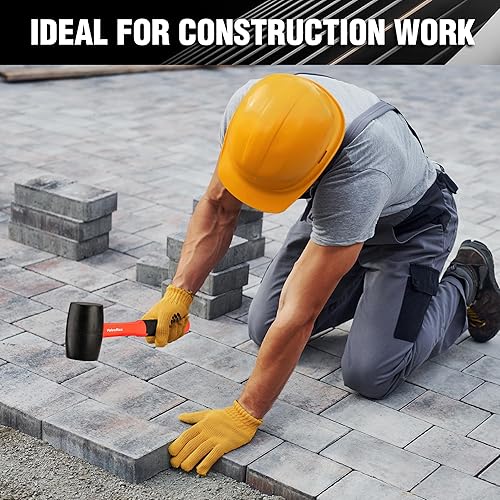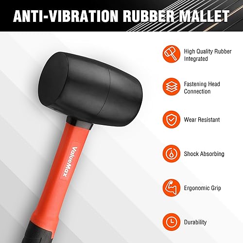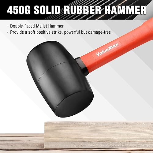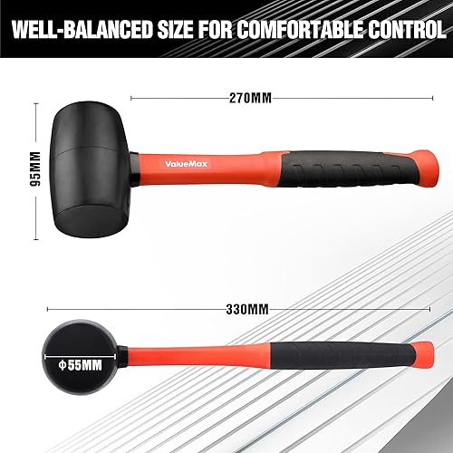 ValueMax Gummihammer 450g mit Fiberglasstiel Schwarz Gummikopf Ergonomisch Griff Schonhammer Vollgummihammer für Bodenleger und Fliesen
