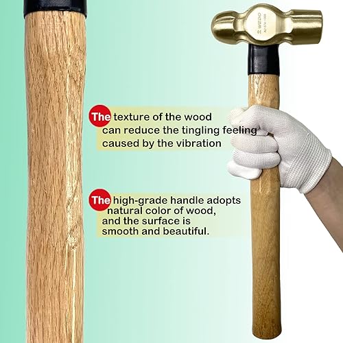 WEDO Kugel Pein Hammer,Nicht funkelnd Schlosserhammer mit Holzgriff,Kopfgewicht 680g,aluminium bronze Kopf geschmiedet,Länge 365mm,Kugelhämmer,BAM- und FM-Zertifikat,DIN Norm