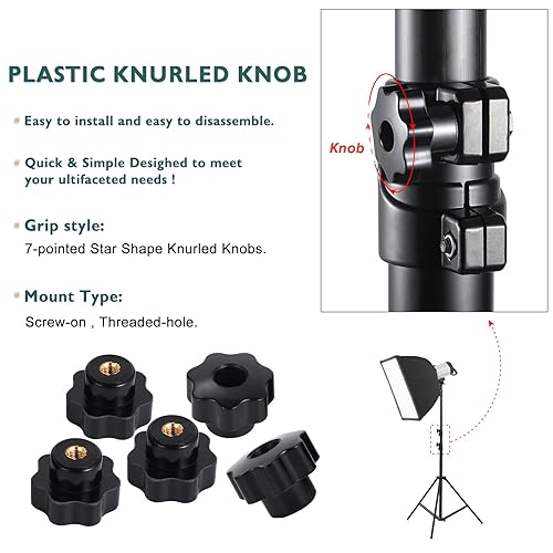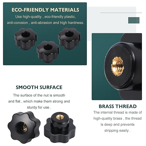 Knpwer 10 Stk M6 Sterngriffmutter,Sterngriff, Schwarz Kunststoff Griffmuttern,Innengewinde Klemmknopf