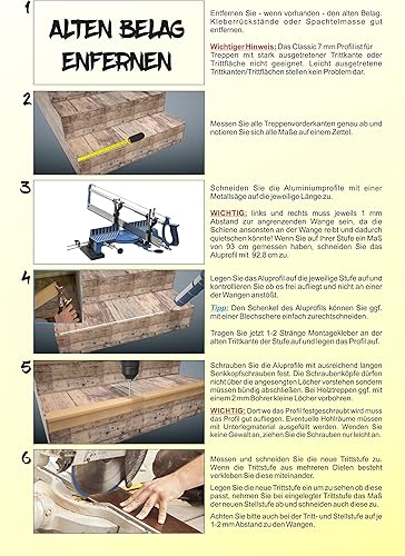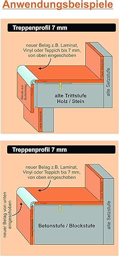 100 cm Treppenprofil CLASSIC 7 mm - Treppenkantenprofil für Treppenverkleidung und Treppenrenovierung - Farbe: Silber
