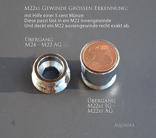 M22 IG x M24 IG, Gewindeadapter, Reduzierstück für Sanitärbereich, verchromtes Messing, Made in Europe, z.B. um preiswerte M22 Strahlregler zu benutzen