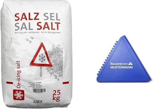 Sanitärshop Baustoffe & Sanitär Set: 10 kg Streusalz Auftausalz für den professionellen Winterdienst geeignet - inkl. 1 Eiskratzer (1 Eimer 10 kg)