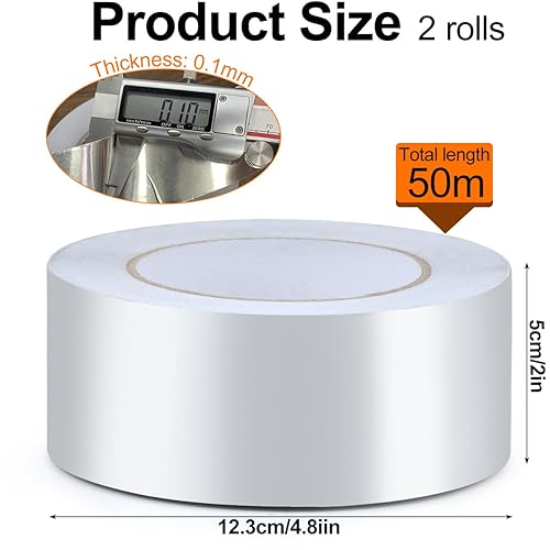 MVQPER 2 Rollen Aluminium Klebeband 50mm x 50 m,Aluminiumband,Selbstklebendes Alu-Klebeband-Aluband zum Versiegeln, Reparieren und Isolieren