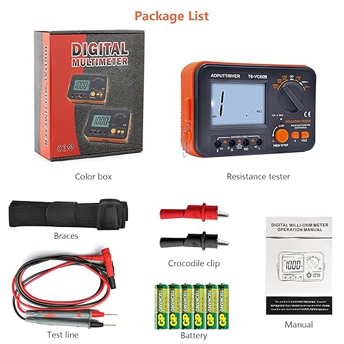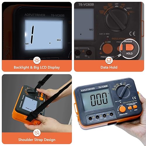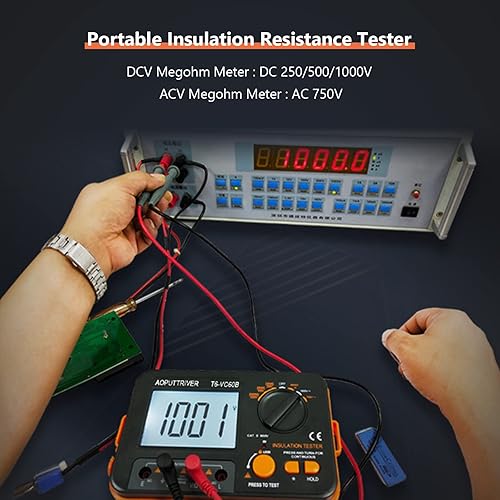 Digitaler Isolationswiderstandstester, 1999 Zählt Megohmmeter Großes LCD-Display Megohmmeter DC250/500/1000V AC750V, 200MΩ~2000MΩ mit Hintergrundbeleuchtung für Datenspeicherung für Motorkabel