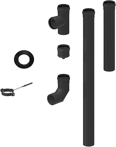 TYGERIX® Komplettes Set mit Schläuchen, Anschlüssen und Zubehör für Pelletofen, 80 mm, Set mit 7 Elementen, sehr hohe Hitzebeständigkeit, Dicke 1,2 mm, formstabil, hergestellt in Italien, zertifiziert