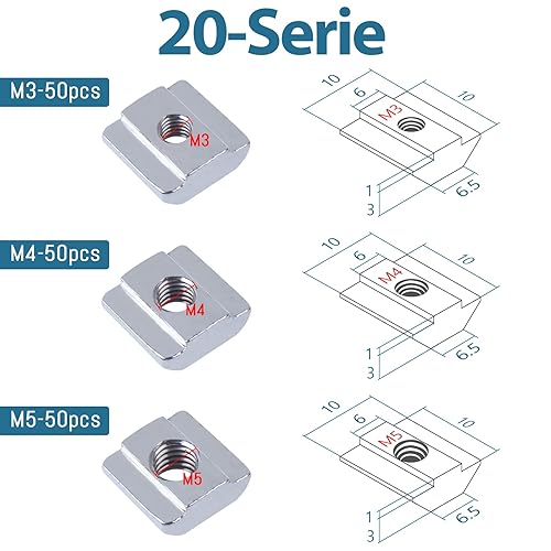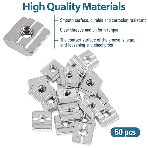 50 Stück Nutensteine M6, Leryati Nutsteine Set T-Nut Kohlenstoffstahl Nutenstein, T-nutensteine lang Aluminiumprofil-Extrusionsschlitz Nutensteine Nut 8 - Typ B Standard 30-Serie